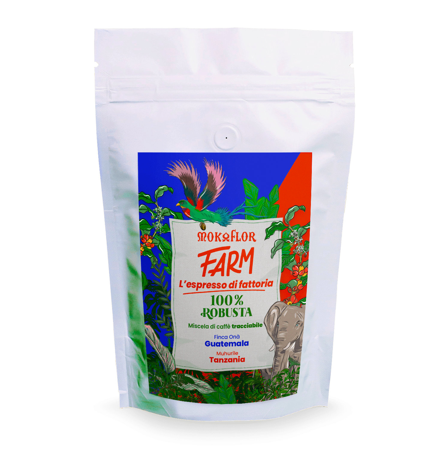La Miscela 100% Robusta Mokaflor Farm unisce queste due realtà in un espresso o una moka dal sapore ricco e complesso, che sorprende per la sua intensità e la sua rotondità. Un viaggio gustativo che parte dalla tradizione e dalla dedizione dei piccoli produttori di caffè per arrivare direttamente nella tua tazzina, mantenendo inalterato il principio di tracciabilità che permette di seguire il chicco di caffè dal campo fino al consumatore finale.